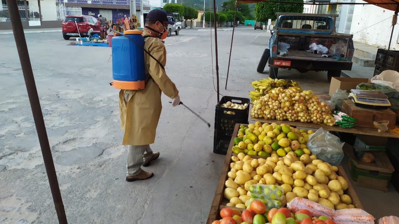Nesta terça-feira, 09, a equipe de Vigilância em Saúde realizou uma ação na Feira Livre, onde fez a aplicação do agente sanitizante nas bancas, veículos e locais mais visitados pela população, distribuiu máscaras, aferiu a temperatura e ofertou álcool a 70% para a higienização das mãos aos comerciantes e consumidores que se encontravam nos estabelecimentos e nas bancas da Feira Livre.