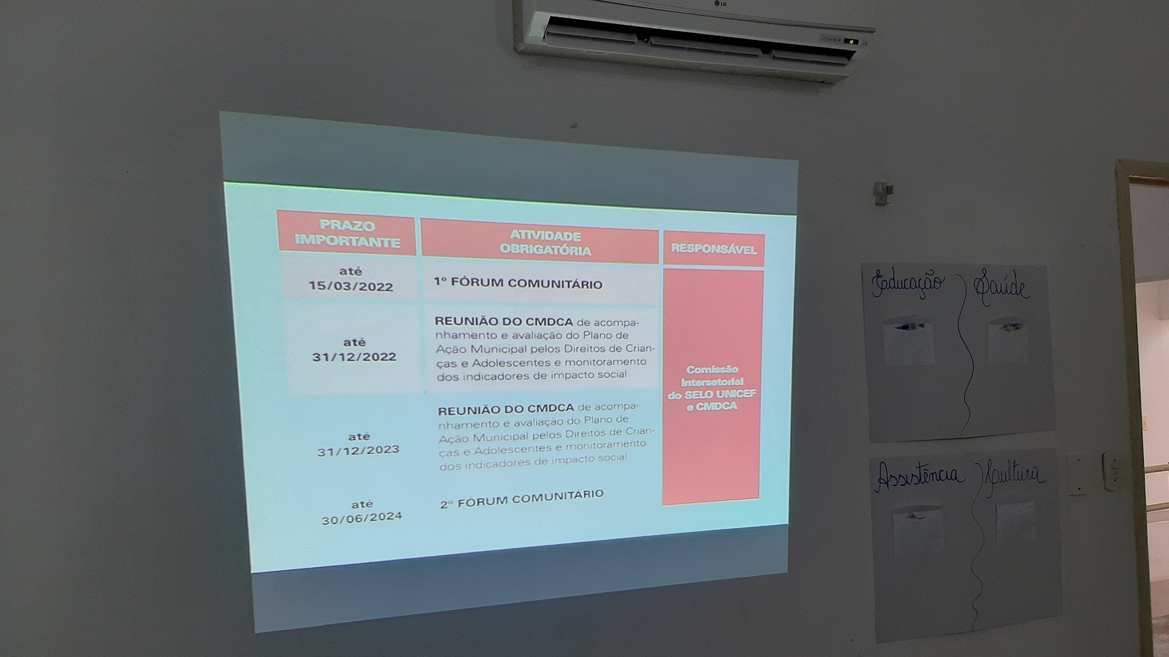 De acordo com a articuladora, ”o encontro foi bastante positivo e foi uma oportunidade para que ela pudesse apresentar os objetivos do Selo e os objetivos de desenvolvimento sustentável presentes nessa edição, bem como os três eixos do Selo (resultados sistêmicos, impacto social e gestão por resultados), os prazos e o que é necessário para a conquista e a melhoria na qualidade de vida das crianças e adolescentes do Município”.