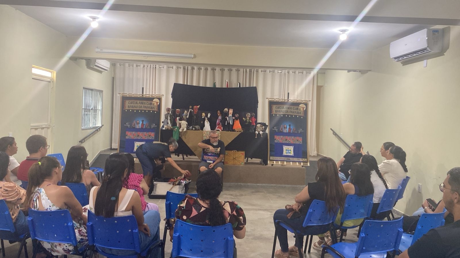 O final de semana foi de muita Cultura na cidade de Mãe d’Água, a partir da apresentação da Companhia de Teatro de Bonecos Boca de Cena, em praça pública, no projeto “Circulando com o Babau da Paraíba”, uma realização com recursos da Política Nacional Aldir Blanc, operacionalização da Secretaria de Estado da Cultura, com o apoio cultural da Prefeitura local. A programação, gratuita e aberta ao público, com ações de acessibilidade em libras, audiodescrição e lugares demarcados para receber pessoas com deficiência, teve lugar em frente ao Mercado Municipal, na Rua Luiz Furtado de Figueiredo, no sábado, 18/10/2015, com início às 19h.