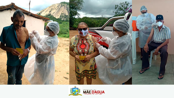 A maratona de vacinações teve início na manhã da segunda-feira, dia 05, nos Sítios Pedraria, João Bento, Garapa, Deserto e Três Serrotes, onde foi realizada a aplicação da 1ª dose nos idosos de 65 a 69 anos e a 2ª naqueles que estão com idade acima de 70 anos. No mesmo dia, na parte da tarde, o atendimento foi na sede do município, contemplando os idosos acima de 70 anos com a 2ª dose.