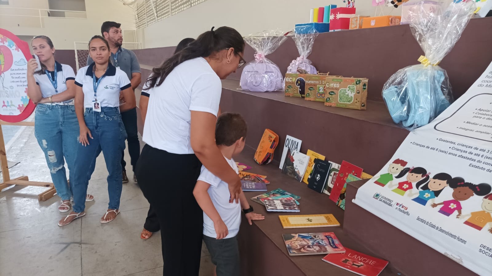 E em um segundo momento, no Ginásio Poliesportivo “O Totão”, onde aconteceu uma exposição de trabalhos e materiais do NAPE, do Programa Criança Feliz e ainda, acolhimentos com fonoaudióloga, fisioterapeuta, psicólogas de demais técnicos do NAPE e da Junta Militar, que apresentou e realizou inscrições para emissão da Carteira de Identidade com o Selo do Autista.