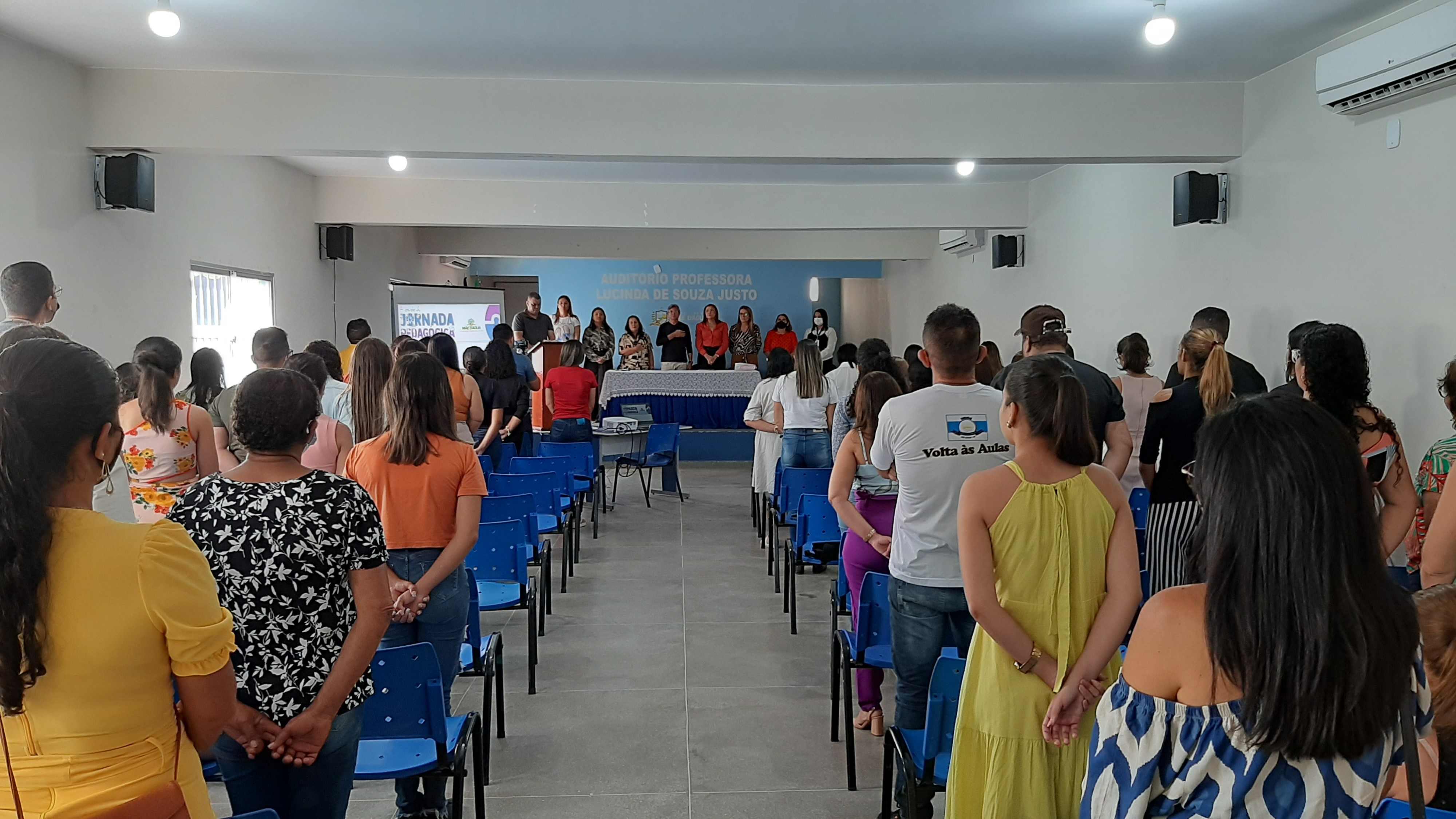 Ao longo de todo o evento a Secretaria Municipal de Educação, com o apoio da Prefeitura, não mediu esforços para bem acolher os profissionais da Educação do Município, que contaram com transporte, café da manhã, almoço e o lanche da tarde todos os dias.