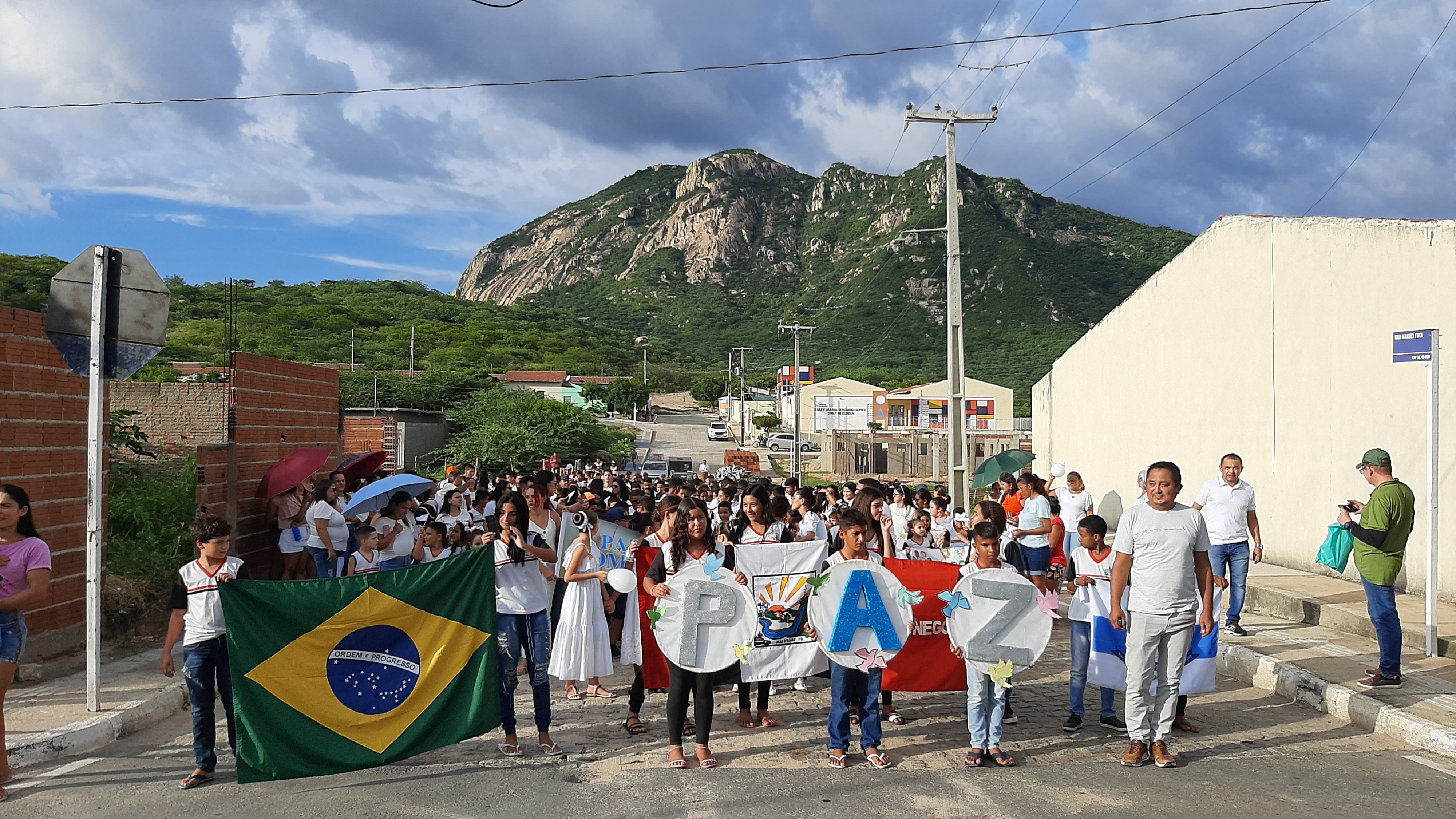 A Escola Maria Jeronimo foi o ponto de concentração, de onde todos os participantes saíram em caminhada pela avenida principal da cidade, com uma parada na Creche Fagner Morais, onde os pequenos se juntaram e seguiram o percurso até o Largo da Prefeitura, onde foram realizadas as apresentações dos alunos.