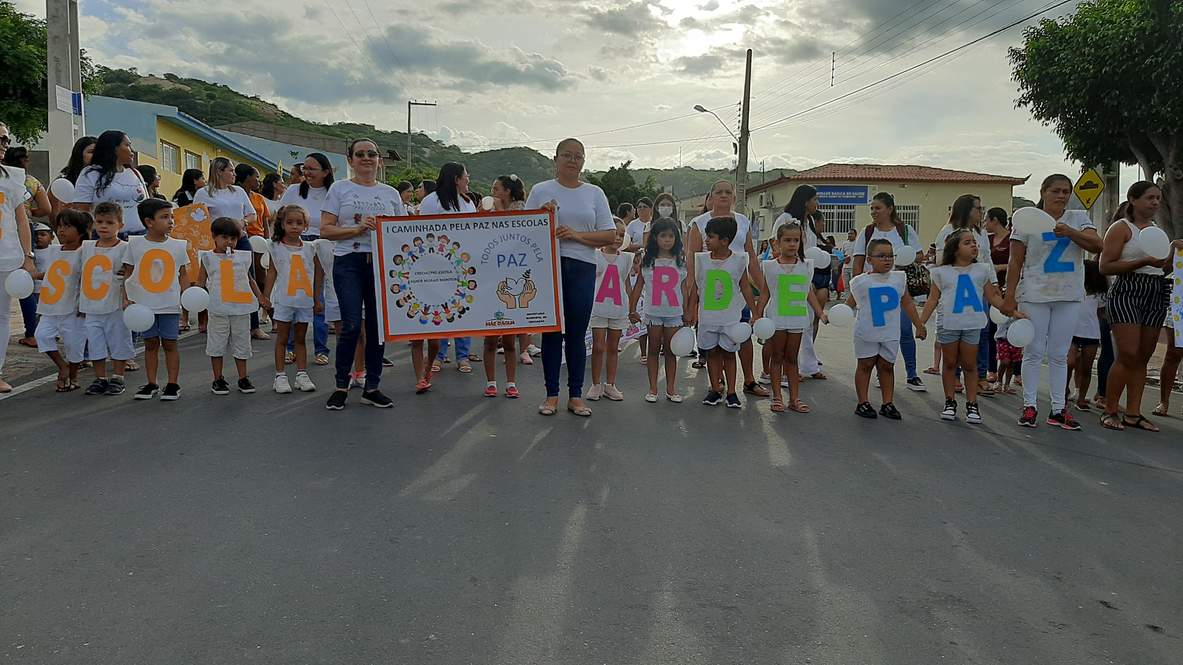 Na tarde desta quinta-feira, dia 04 de maio, a Secretaria de Educação de Mãe d’Água, junto com as Escolas Manoel Nunes Trindade, Maria Jerônimo Nunes, Creche Fagner Morais Monteiro e a Escola Cidadã Integral Francisco Romano da Silveira, realizaram a “Caminhada Pela Paz nas Escolas”.