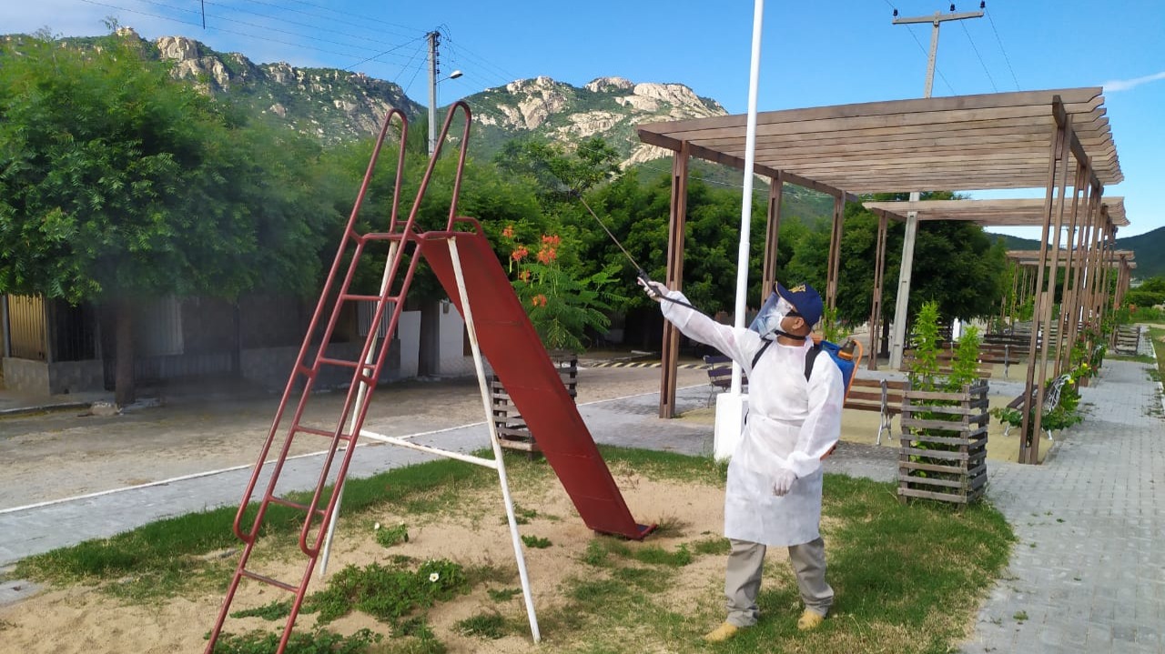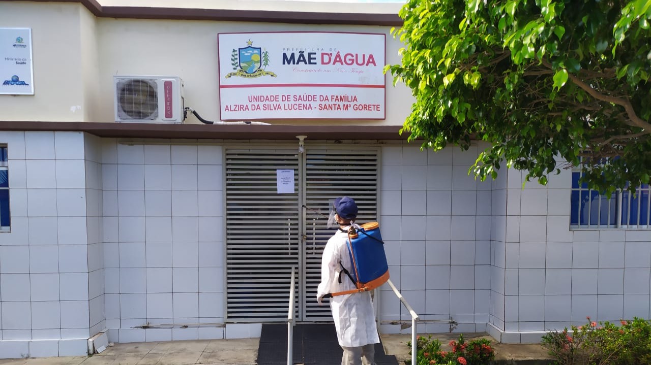 Dentre as ações desenvolvidas pela Prefeitura de Mãe d’Água, através da Secretaria Municipal de Saúde, está a realização dos serviços de higienização e desinfecção de prédios públicos, praças e locais onde há aglomeração e maior circulação de pessoas, a exemplo de supermercados, bancos, lotéricas, templos religiosos e Unidades de Saúde.