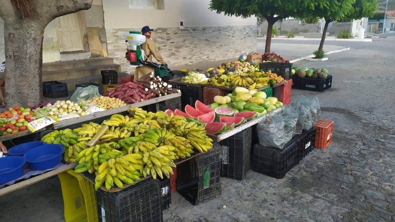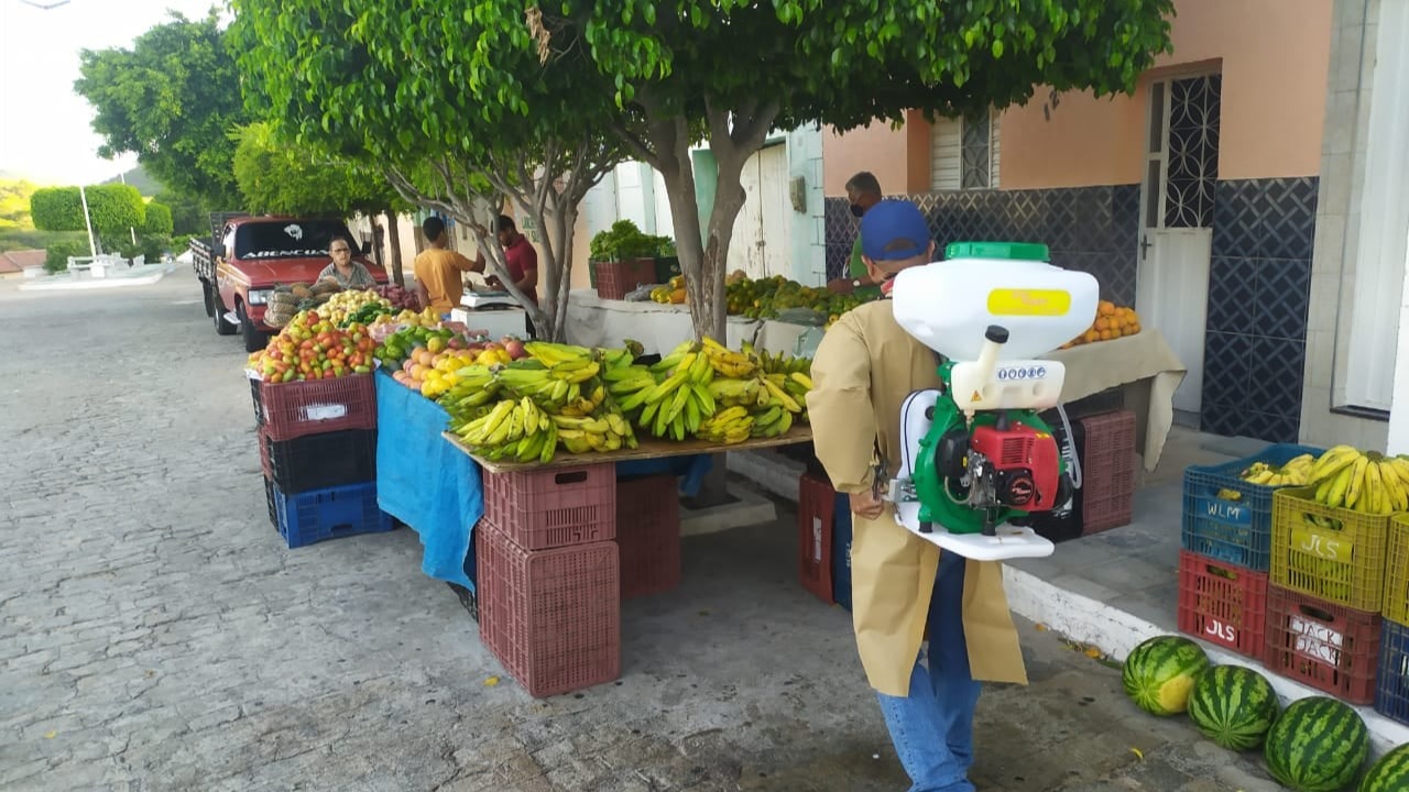 Desde as primeiras horas da manhã os profissionais da Secretaria Municipal de Saúde, através da equipe da Vigilância em Saúde, estão nas ruas realizando o trabalho de desinfecção de veículos e das bancas de verduras e frutas espalhadas pela Feira Livre de Mãe d’Água.